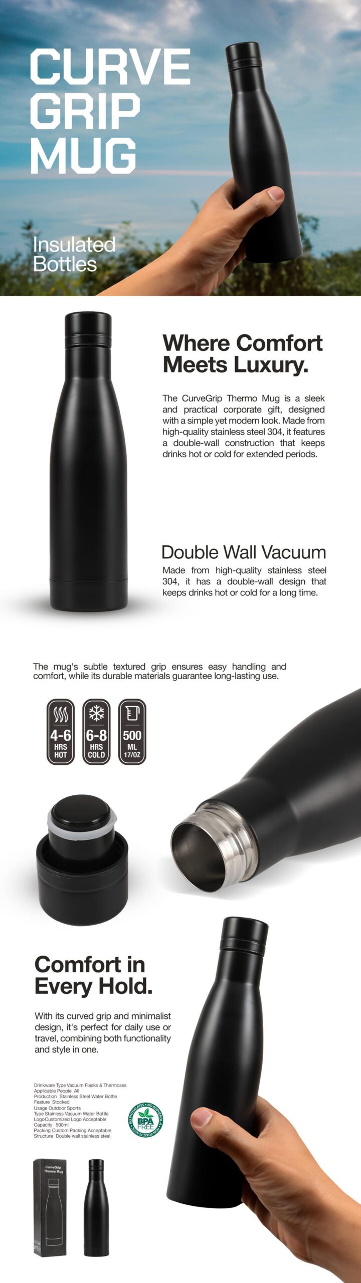 Enjoy your favorite beverages at the perfect temperature with our high-quality insulated thermal cup. Designed with double-wall vacuum insulation, this cup keeps drinks hot for up to 12 hours and cold for up to 24 hours, making it the perfect companion for your busy lifestyle.