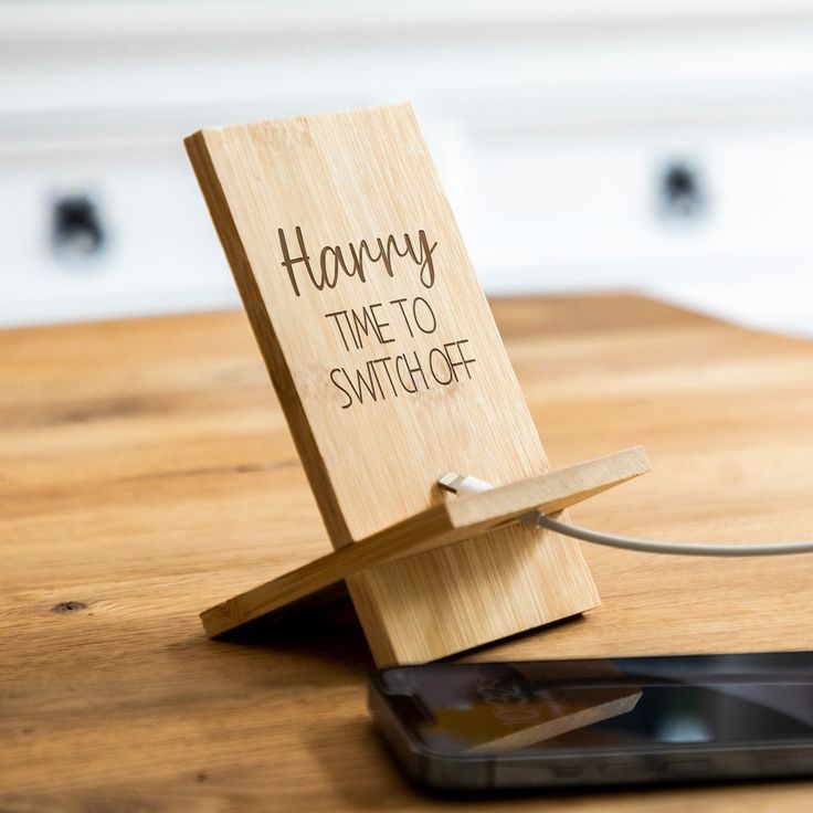 The Groove Bamboo Phone Stand is the perfect minimalistic, elegant, and eco-friendly addition to your office desk. This stand is the perfect solution to keeping your phone on your desk whilst being hands-free, making multi-tasking a breeze! We can laser engrave however please note no two products will have the same outcome. We encourage Food Grade Ink, which is FDA-approved. Features. Cable slot to allow phone charging during use. Made of high-quality bamboo. Lightweight and compact. The angled channel holds mobile devices at an optimal angle