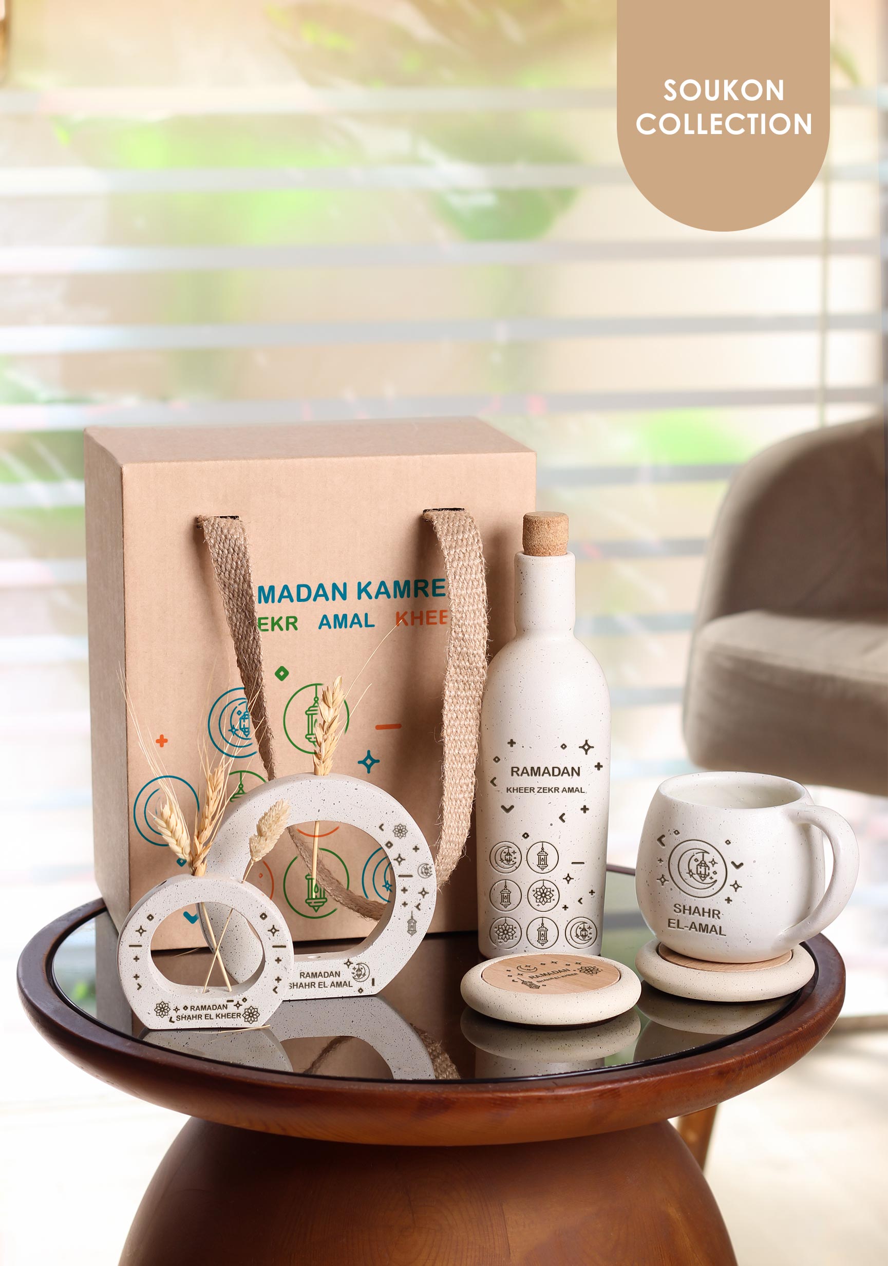 Celebrate Ramadan with this beautifully curated gift box, featuring a stylish notebook, premium pen, elegant mug, decorative coasters, and a sleek desk set. Perfect for enhancing productivity and reflection during the holy month, this set makes a thoughtful gift for family, friends, and colleagues. A perfect blend of practicality and elegance for Ramadan and Eid celebrations.